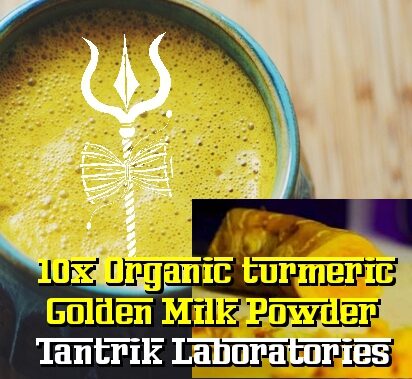 The benefits of turmeric are being touted all over the world by health enthusiasts, and with good reason. The benefits are so amazing from anti-inflammatory ,anti-oxidant, helps digestion, fight tooth decay, helps wounds heal, natural painkiller, heals bone healing, protects skin, anti-allergic, treat asthma, boost immunity, regulate blood sugar, blood purifier, helps coughs, improves arthritis, stomach ulcers, and weight loss. We present a family favorite from the Tantrik Laboratories, who have a special process that ferments the organic turmeric for maximum bio-availability, and then dries and extracts that in a quick spagyric wash, to produce an absolute purified golden powder for infusing into milks, either dairy or fresh homemade nut, seed milks. The high potency version of this, and it its only taking a small teaspoon in warm milk. Curcumin bioavailability is known to be vastly increased by the presence of just a small amount of piperine, and we have included a pure black pepper extract with some Indian long pepper (pippali) for encouraging these benefits and imparting a light, but delicious spicy tone to the milk. This is what the siddha gurus sip on.