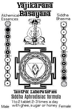 However, the main aim of Vajikaran is always successful copulation for healthy reproduction, with sexual pleasure being just an additional benefit; therefore it is considered a part of ‘eugeny.’ As will all herbal medicines it is best as part of a total healing protocol or shodhan (body cleansing) through vaman (emesis), virechan (purgation) and swedan (sweating). These and other therapies help to fix the imbalance (doshic body constitution-Tridosha theory) and with a proper diet for aiding the taking of certain herbal and herbo-mineral combinations. One must make the psychological gestures and ritualize erotica to experience and reawaken the love and passion. The atmosphere of seduction is just the same as high magic, which occupies each sense with the correct correspondences. The human body is primed for such experiences, as we are nerves and skin to feel the most intense of pleasures. To cultivate the erotic life, one must lubricate the frictions that destroy peace and make the home a sanctuary of joy, relaxation. The core of the relationship is love expressed in the sexual act, the highest alchemical marriage of the union of opposites. Do not let this precious energy diminish and take the herbs that spark the sexual fires to ignite a new lifestyle that honors and prioritizes the active love that is the continuous gestures and signals of attraction and devotion. This climaxes into the sexual act and bonding of relationships, which is a true act of worship and healing.